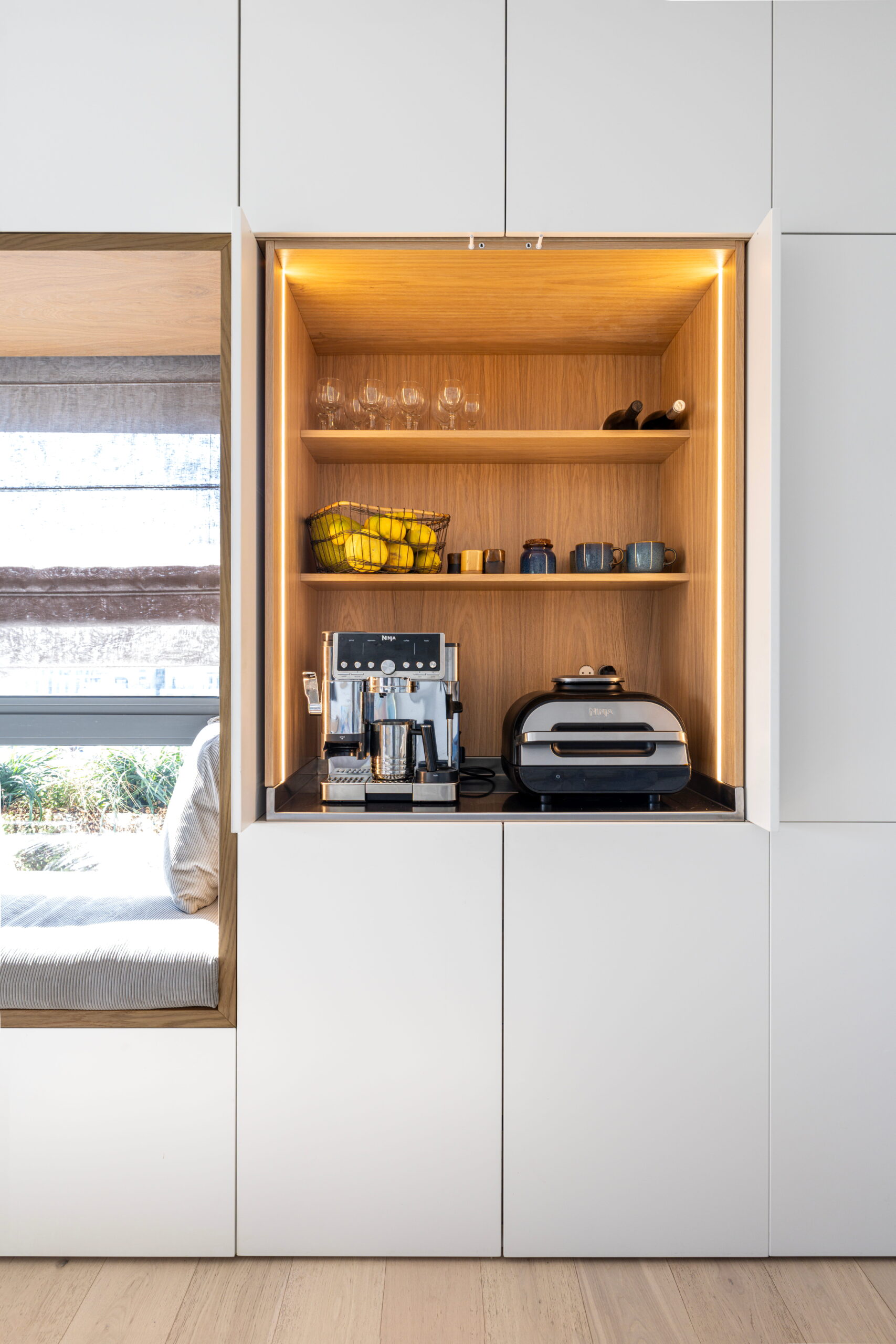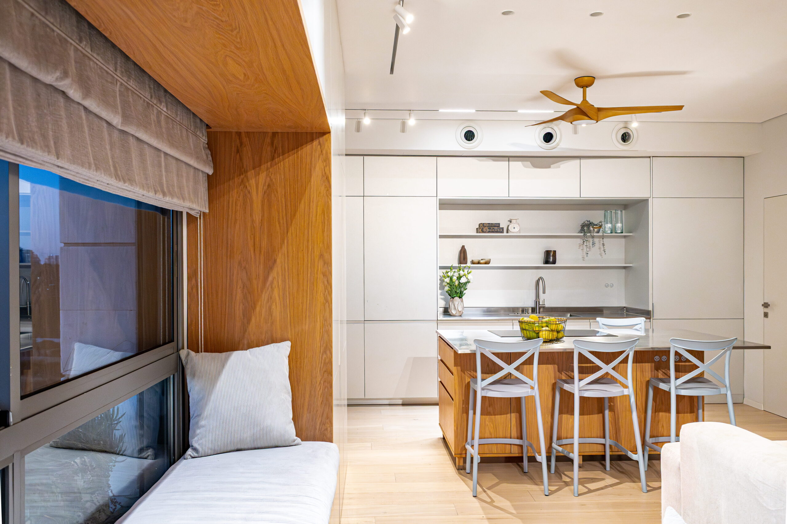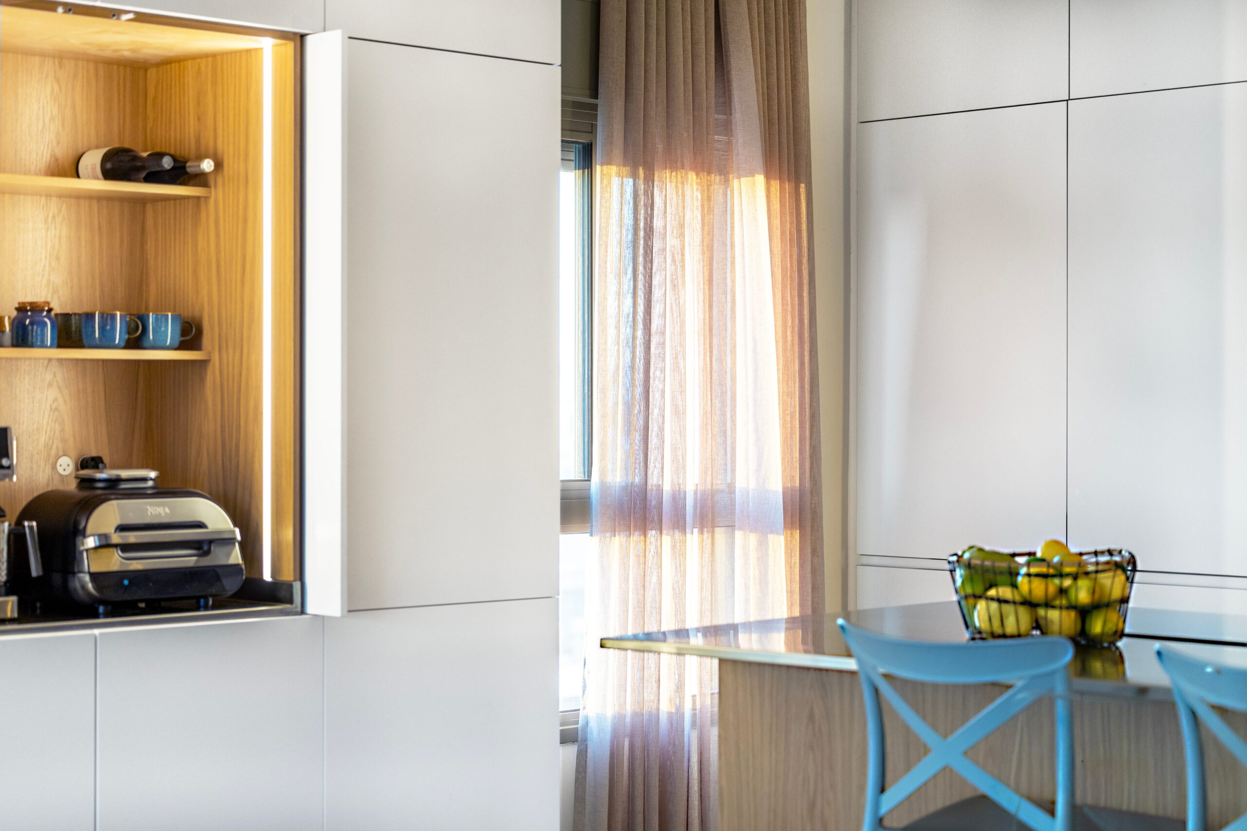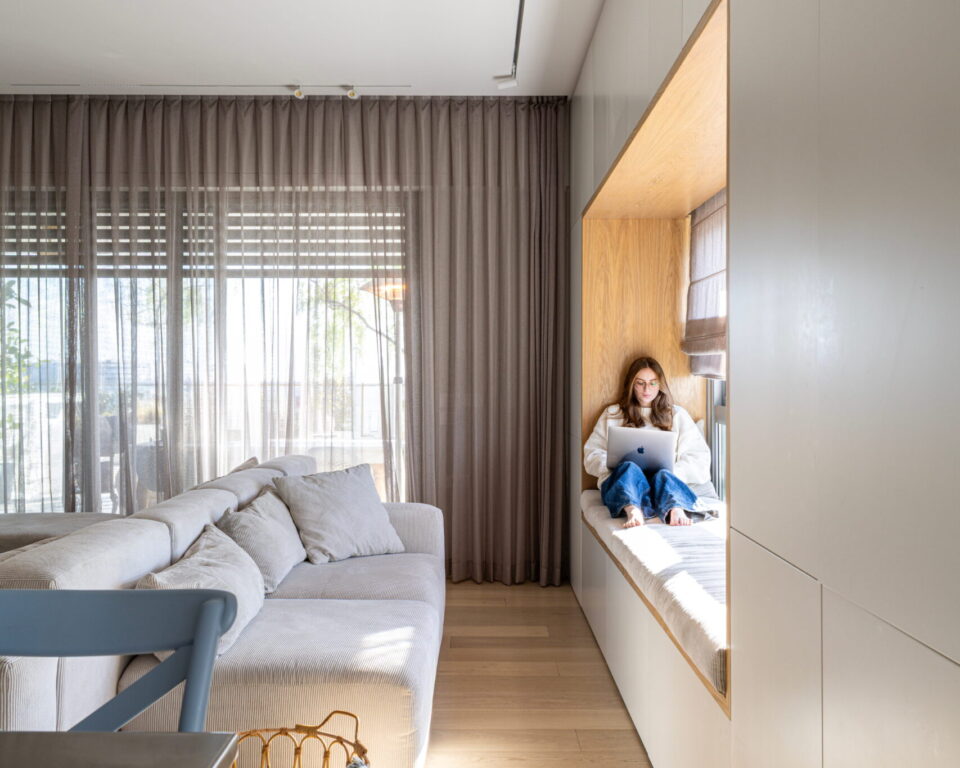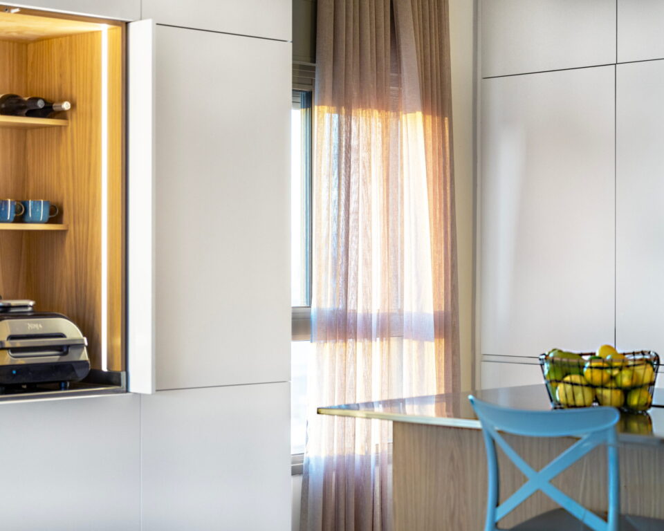 נגרות אומן לביתה של האדריכלית גבי בר סופר. שילוב חומרים, פרטי נגרות ותכנון בהתאמה אישית.